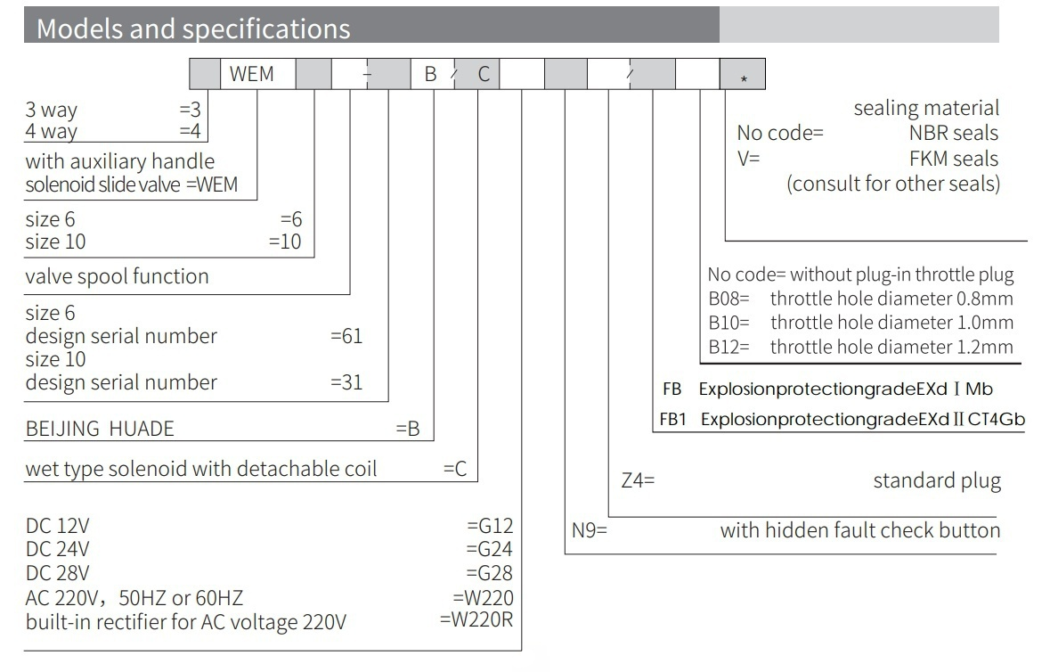 Wemm түрүндөгү багыттоочу клапан - бул соленоид жана операциялык туткасы тарабынан башкарылган багыт клапулу. Ал ачылышын, жабууну жана суюктуктун агымынын багытын көзөмөлдөйт.